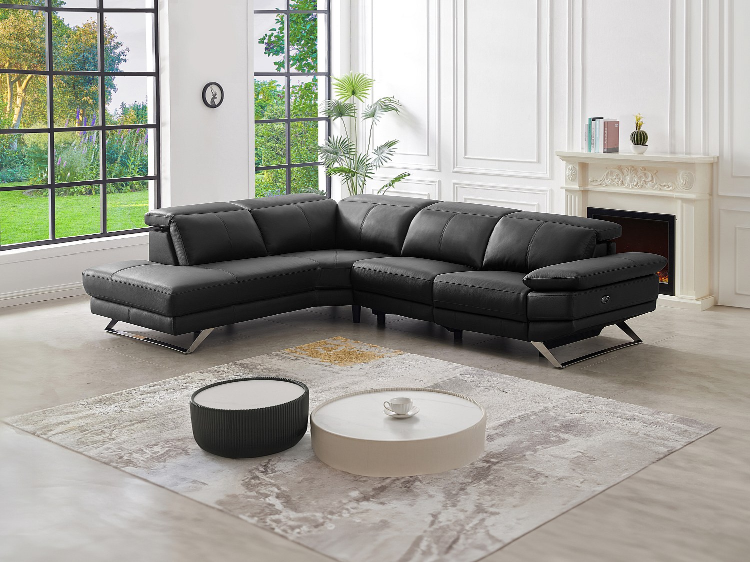 Vänstervänd elektrisk recliner-hörnsoffa i svart kohud PUNO II