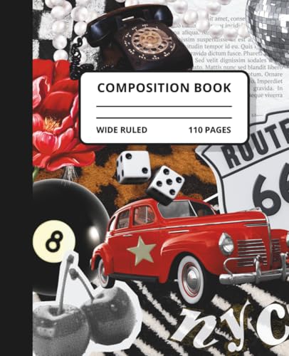Highly Classified Vintage Collage Notebook – Retro Red Car Journal, Wide Ruled Composition Book for Baddies, Creatives & Storytellers
