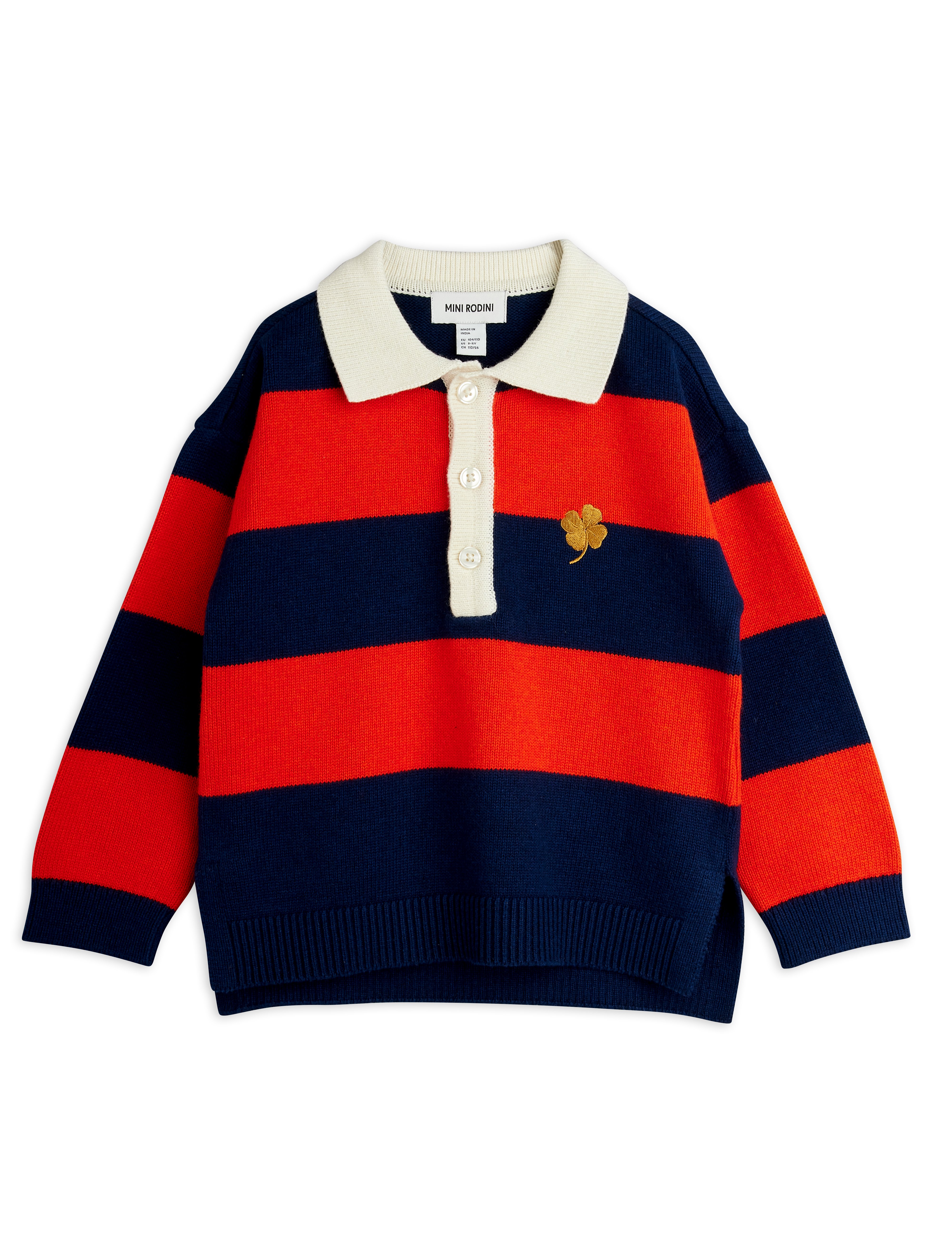Mini Rodini Clover Emb Knitted Rugby Sweater Röd