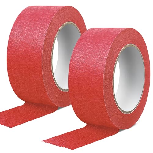 GUOSIYAO Röda Crepe-Tejp Rullar 50 mm x 30 m Maskeringstejp Täck Tape För Målning Hantverk Och Gör-det-själv Rena Kanter Inga Rester 2 st