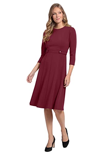 London Times Scuba Crepe L/S Midi Klänning, Greppar vinröd, 42 SE