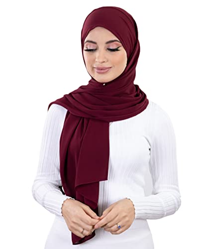 Lyxig crepe knytning hijab för beslöjade muslimska kvinnor HE900, Röd Bordeaux, 180X70 CM