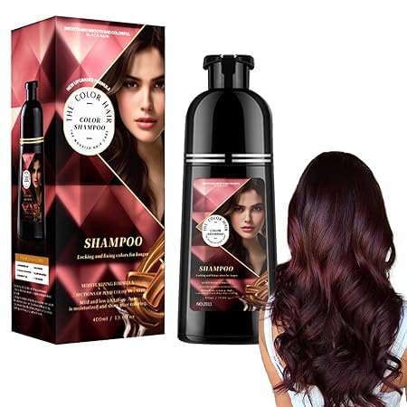Vinröd Wine Hair Color Shampoo 400 ml – naturlig hårfärg för män och kvinnor, 3-i-1 omedelbar färgning med vinröd ton, hårfärg schampo för grått hår, schampo för hudfärg, brun (röd)