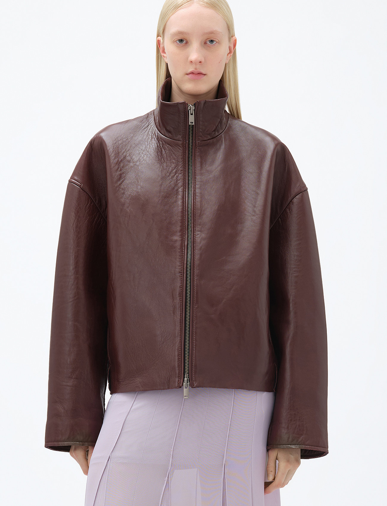 REMAIN Birger Christensen Oversize Leather Jacket - Burgundy - 36