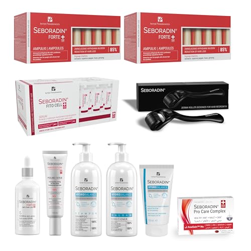 SEBORADIN Maria Red Set PRO - Derma Roller - starka ampuller - Fitocell-serum - nattserum - enzymatisk skrubb - schampo - fuktgivande balsam - hårkräm - kosttillskott