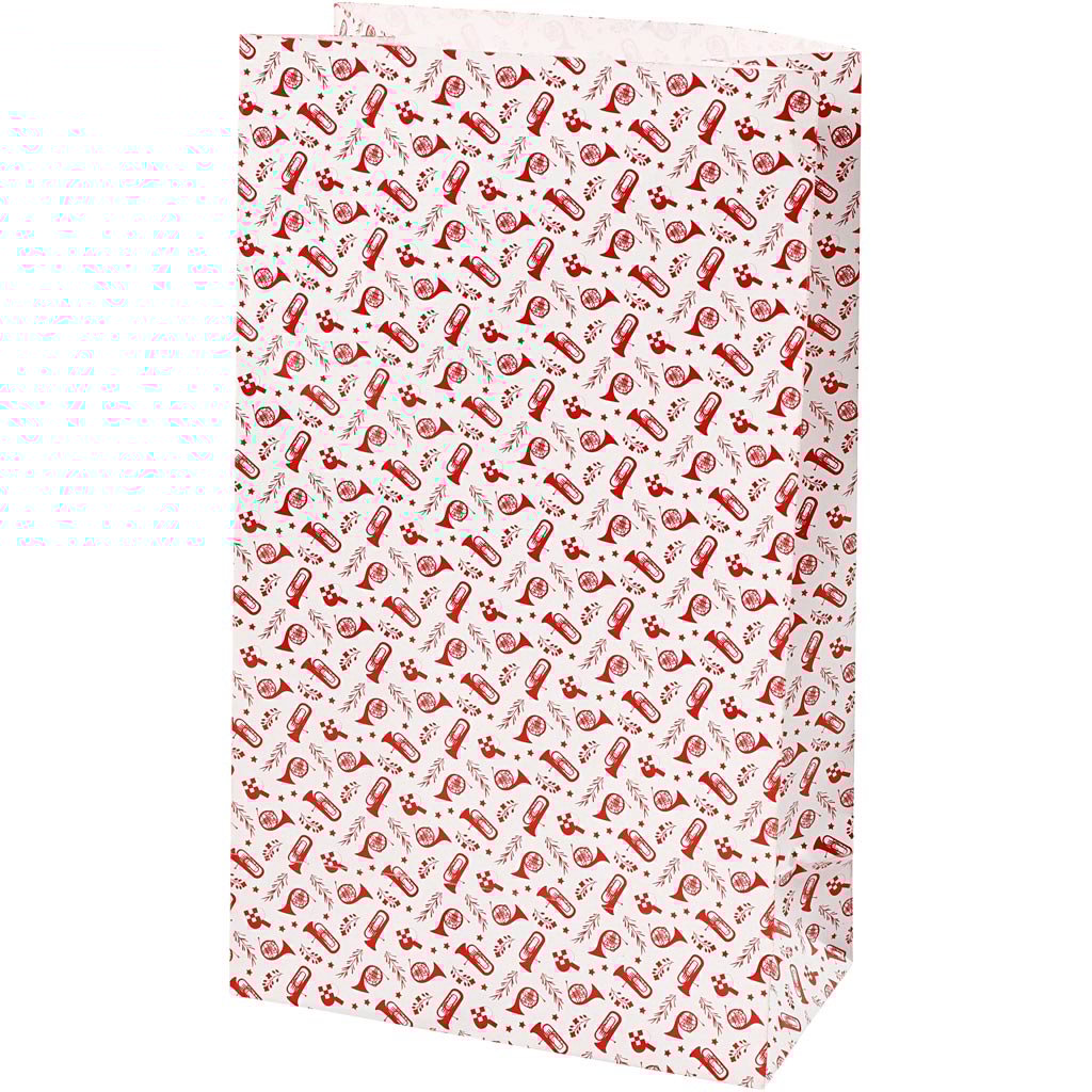 Papperspåsar, trumpet, H: 21 cm, stl. 6x12 cm, 80 g, röd, vit, 8 st./ 1 förp.