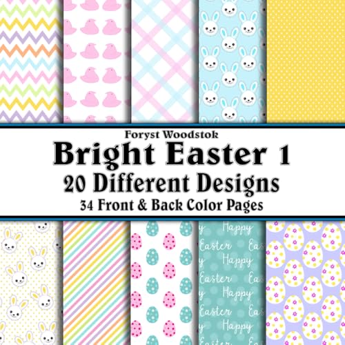 Scrapbook Paper - 34 Front and Back Full Color Sheets: Bright Easter Patterns - Spring Blue Pink Purple Yellow Orange Green Bunny and Eggs - 8.5"x8.5"