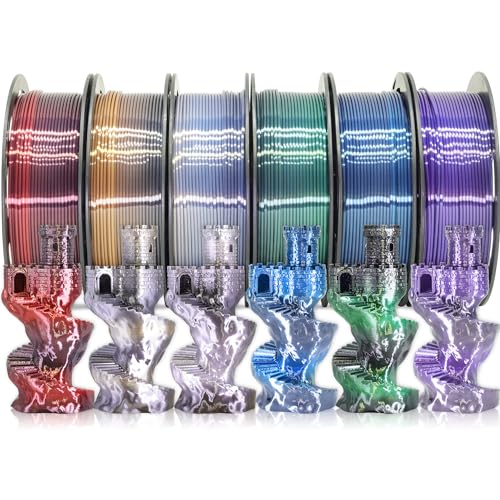 MIKA3D 6 Spools Fast 2 Color Change Silk PLA 3D Printer Filament Bundle, Silk Black Color Change to White/Red/Orange/Blue/Purple/Green, Each Spool 250g, Total 1.5kg Silk PLA Bundle 250g X 6