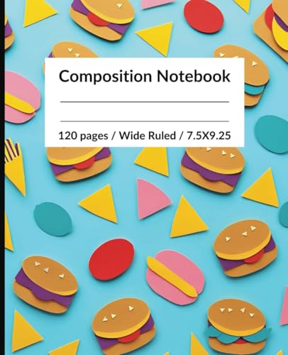 Composition Notebook: Cut Paper Hamburger, Fries, Hotdogs Print | Purple, yellow, pink, orange, blue, green | 120 pages wide ruled | 7.5 X 9.25 | For teens, adults, children