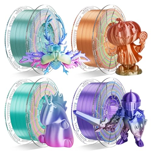 Conjure Silk Rainbow PLA 3D-skrivarfilament, Multicolour Rainbow PLA Purple Yellow Orange Pink Blue Green Red Cosmic Filament 1.75mm 3D Printing Filament 4x1KG Bundle/8.8LB