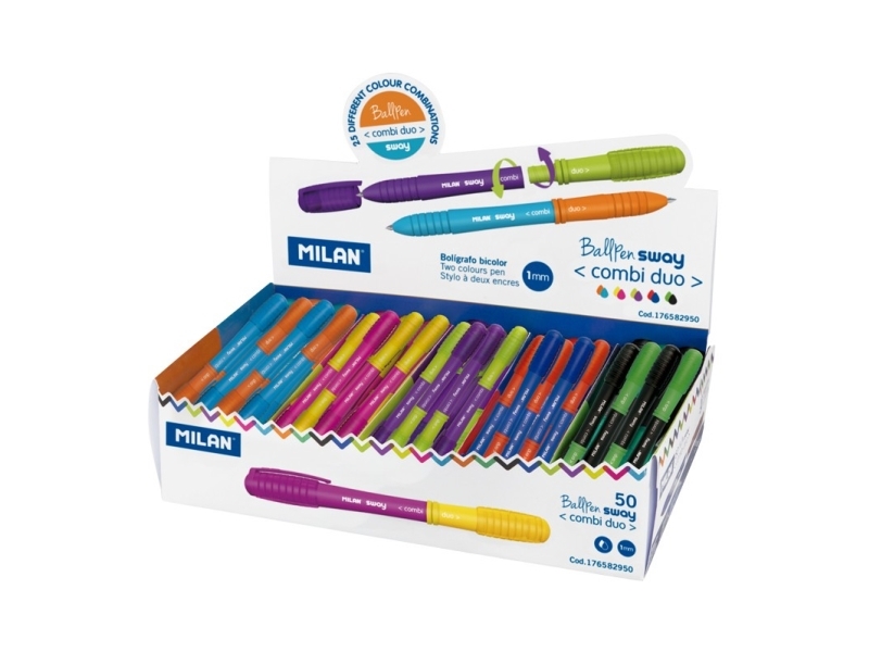 Milan 50 Sway Combi Duo, Klämma, Kulspetspenna, Pinnformad, Svart, Blå, Grön, Ljusblå, Ljusgrön, Lila, Orange, Rosa, Röd, Gul, 50 Styck