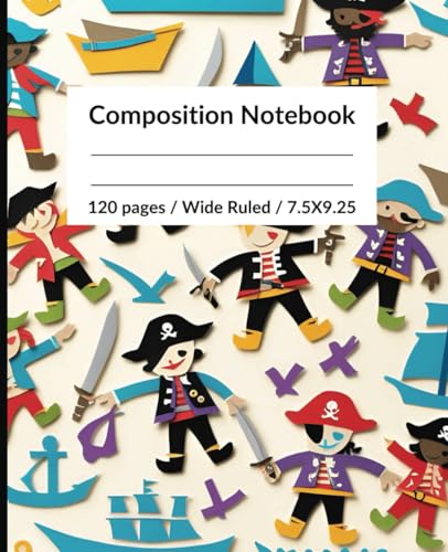 Composition Notebook: Cute Pirate Cut Paper Print | Blue, purple, yellow, red, green | 120 pages wide ruled | 7.5 X 9.25 | For teens, adults, children