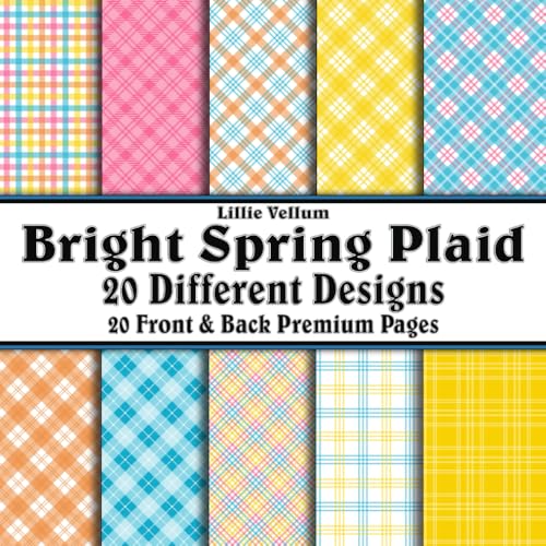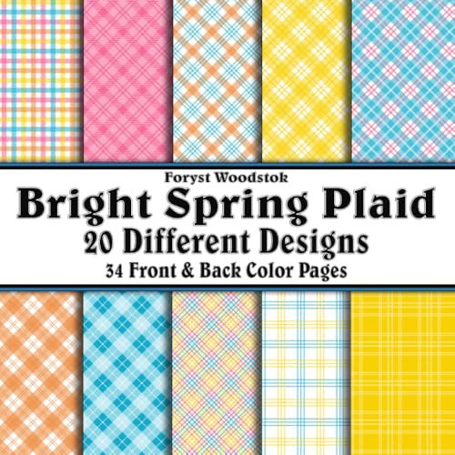 Scrapbook Paper - 20 Front and Back Premium Color Pages: Bright Spring Plaid Patterns - Colorful Pink Green Blue Orange Yellow Purple - 8.5"x8.5"