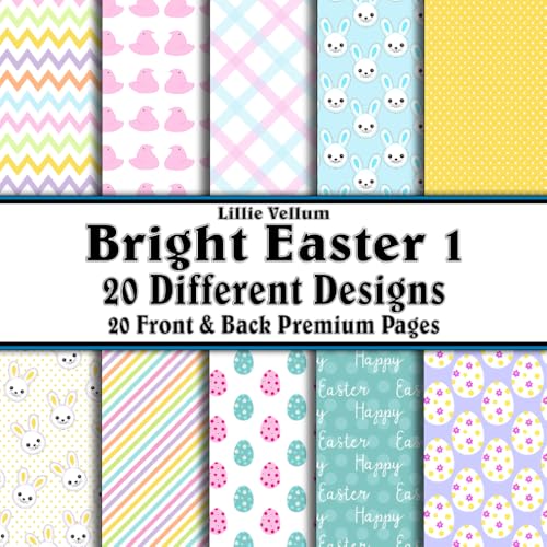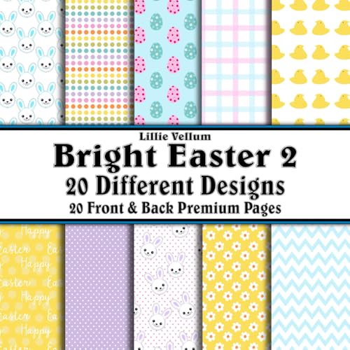 Scrapbook Paper - 20 Front and Back Premium Color Pages: Bright Easter Patterns 2 - Spring Blue Pink Purple Yellow Orange Green Bunny and Eggs - 8.5"x8.5"