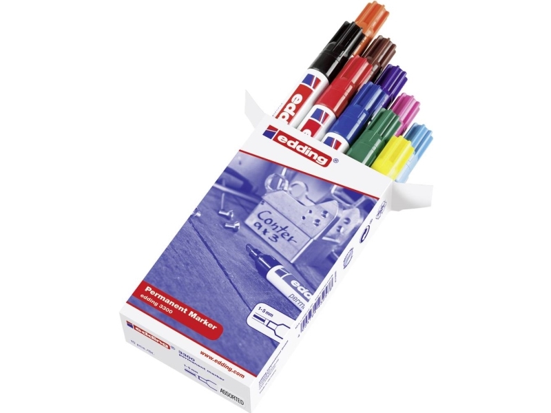 Edding 3300, Svart, Blå, Brun, Grön, Ljusblå, Orange, Rosa, Lila, Röd, Gul, Mejselspets, Gjuten Aluminium, 1 Mm, 5 Mm, Kartong, Glas, Läder, Metall, Plast, Trä
