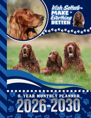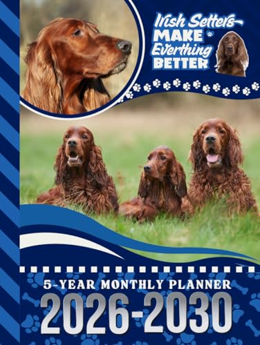 5-Year Monthly Planner 2026-2030: Hardcover / Dated Large / 60 Month Agenda / With Notes Pages - To Do List / Red Irish Setter Dog Art Cover Design