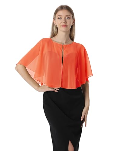 Chiffon Capelet Women's Soft capes Shawls and Wraps for Evening Dress Wedding Cape Cover Up (Orange Red)