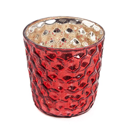 Woho Red Votive Candle Holders Bulk Set of 12, Glass Tea Lights Candle Holder for Wedding Table Centerpiece, Studded Diamond Tealight Candle Holder for Christmas Party Holiday Home Decor