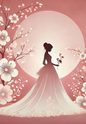 A5 size (5.8 x 8.3 in) 100 page Wedding themed 'To Do List' notebook - A silhouette of a bride wearing a long flowing dress on a plain red background