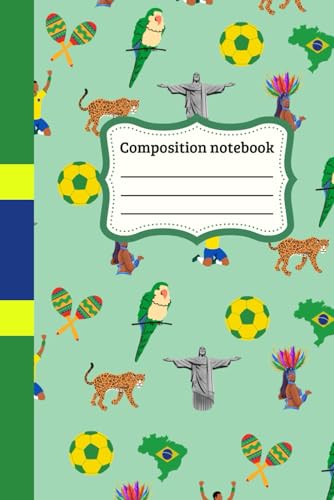 Brasil composition notebook: Brazilian wide-Ruled Journal featuring Christ the Redeemer, Football & Carnival Dancer-inspired cover