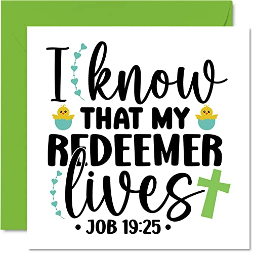 Påskkort religiöst - My Redeemer Lives Job 19:25 - Glad Påskkortsvän, bibelpåskkort, kristna påskgåvor, 145 mm x 145 mm vårvårvårvår-gratulationskort för familj och vänner