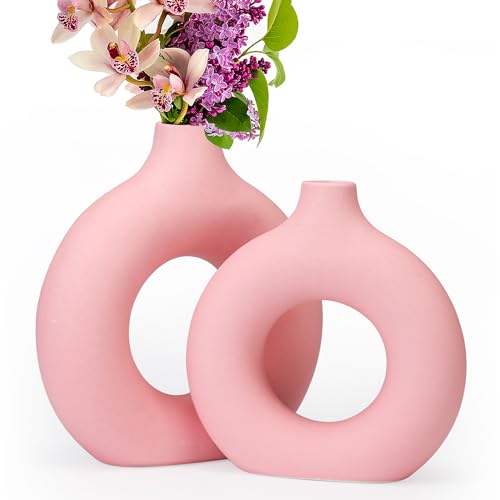 2-pack ljusrosa keramisk vas för modern heminredning, rund matt pampas blomvaser minimalistisk nordisk boho stil för bröllop middag bord fest vardagsrum kontor sovrum, vas dekorativ gåva