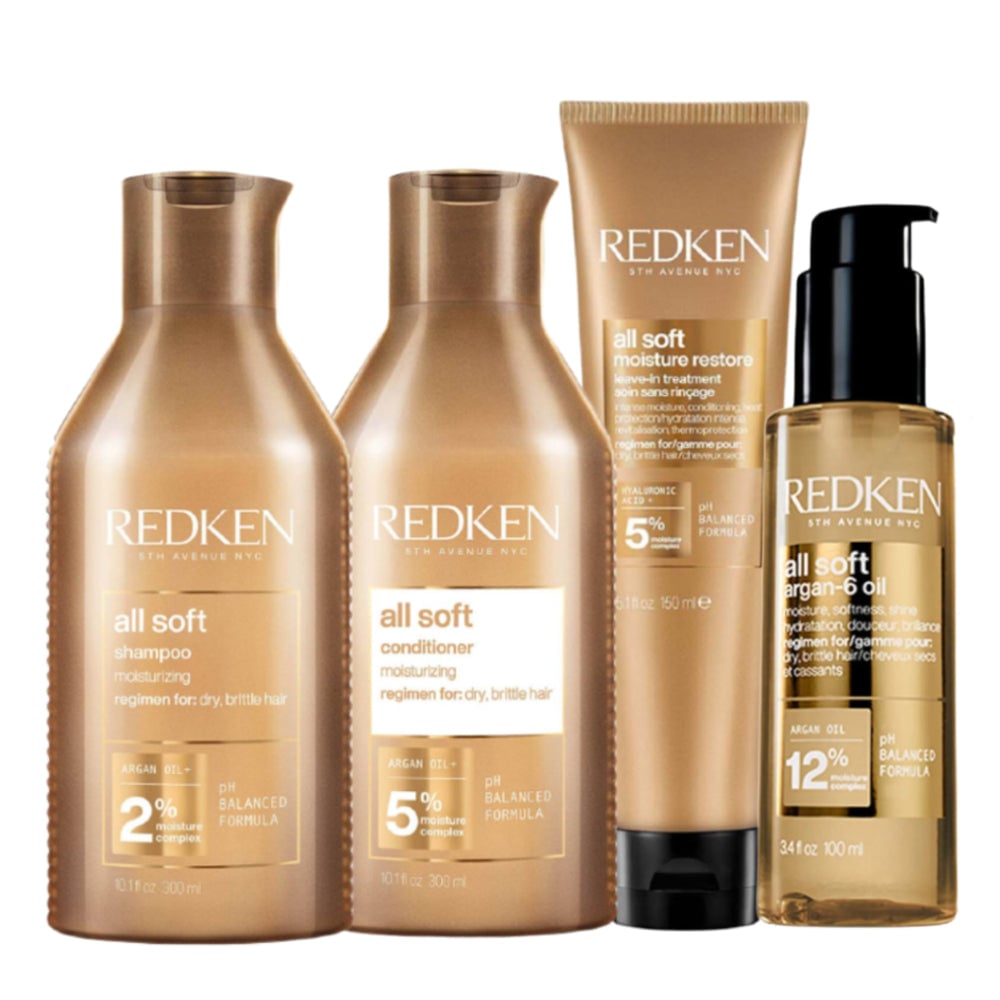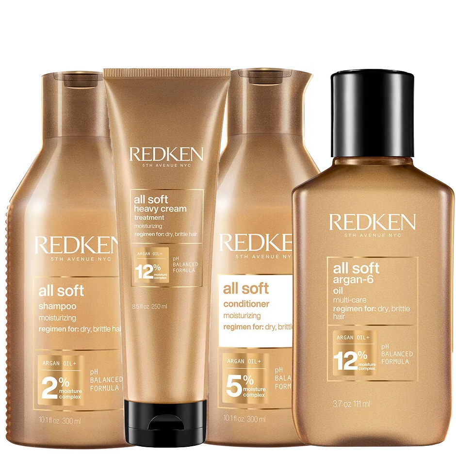 Redken All Soft Shampoo, Conditioner and Leave-in Routine for Dry Hair