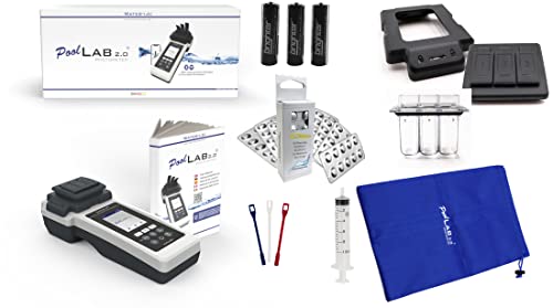 harren24 PoolLAB 2.0 Special Edition, elektronisk vattentestare (fotometer) pool, Bluetooth inkl. 70 + 100 testtabletter Refill Mix klor pH-värde fenol röd, alkalinity M cyanursyra