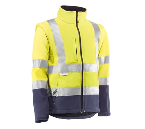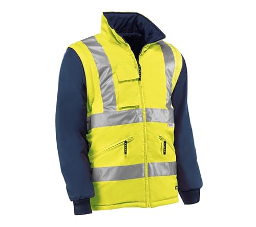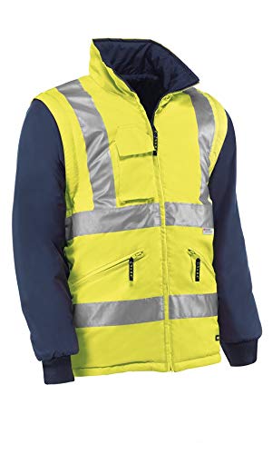 Juba Avtagbar Vändbar Jacka 100% Polyester Oxford Pu 3M Reflekterande Stripes Fluorescerande Gul Navy, Storlek XS