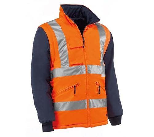 Juba Avtagbar Vändbar Jacka 100% Polyester Oxford Pu 3M Reflekterande Ränder Fluorescerande Orange Marinblå, Storlek XS