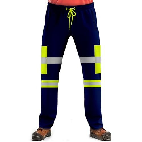 NOROZE Hi Viz säkerhetsarbetsbyxor för män med grå hög synlighet reflekterande fluorescerande tejp Hi Vis tvåfärgad strid sidoficka underdel joggingbyxor arbetskläder, Stil 2: Neongrön/marinblå, XXL