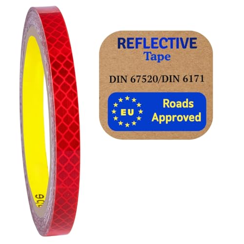 2 Stycken Röd Reflekterande Tejp 10 m x 2 cm för Bil, Motorcykel och Cykelhjälmar - Vattentäta Klistermärken