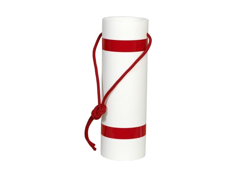 Långvarumarkerare Ø100mmx30cm - Vit Plastcylinder, Med Röd Reflekterande Tejp Och Med Monterad Sladd