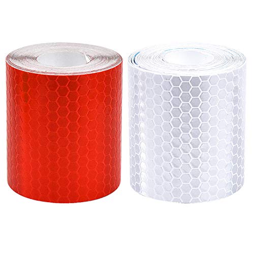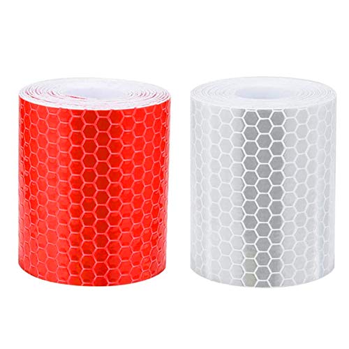 Reflekterande tejp, YMWALK 2 st 5 cm × 3 meter reflektortejp självhäftande klistermärke hög synlighet för fordon bilar släpvagnar cyklar hjälmar – vit och röd