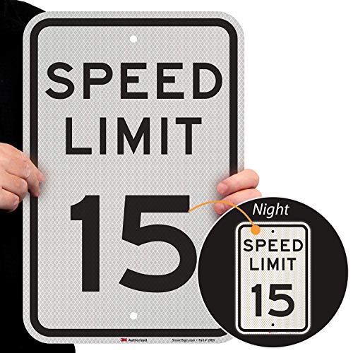 SmartSign MUTCD # R2-1-15 3M reflexskylt med hög intensitet, legend "Speed Limit 38 cm, 45 cm hög x 30 cm bred, svart på vitt