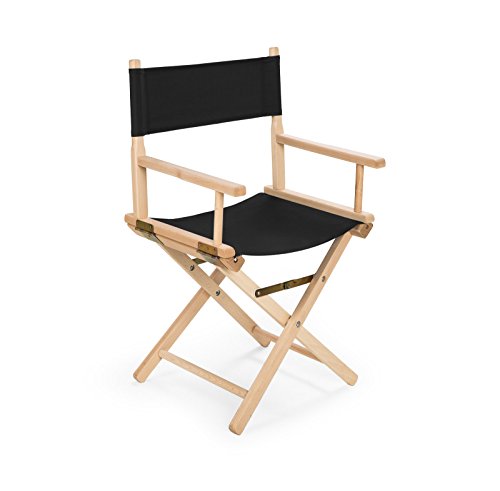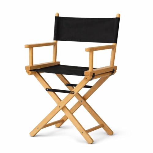 IMPWOOD regissörsstol av obehandlat bokträ – vikbar regissörsfåtölj med svart tygöverdrag – lätt och platsbesparande för trädgård, balkong, camping
