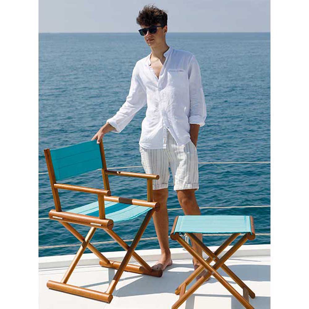 vidaXL Hopfällbar regissörsstol blå massiv teak