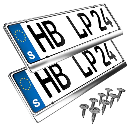 L&P 2x Nummerplåtshållare - hållbar & säker - 8 skruvar - rostfri stål polerad - 520x110 mm Registreringsskylthållare för svenska & EU - Nummerskyltshållare passar alla bilar - universell fästning