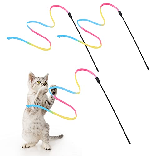 Cobee Katt Interaktiv Regnbåge Stav - Leksak med Band och Berlock för Kattträning, Tränare, Kreativa Roliga Husdjur (3 Delar, 30 cm)