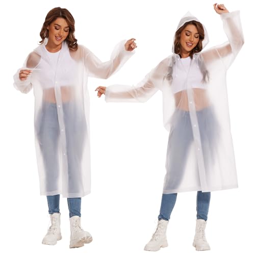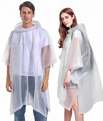 Bosdontek 2 stycken regnponcho återanvändbara, regncape med huva regnrock för vuxna, vattentät regncape regnponcho för kvinnor och män, regnponcho för festival konsert, Vit, one size
