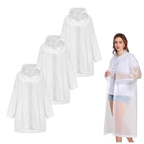 3 stycken regnponcho för kvinnor och män, transparent regnjacka regncape med dragsko huva Eva Travel vikbar regnponcho regnrock återanvändbar, för vandring cykling camping festival och resor,
