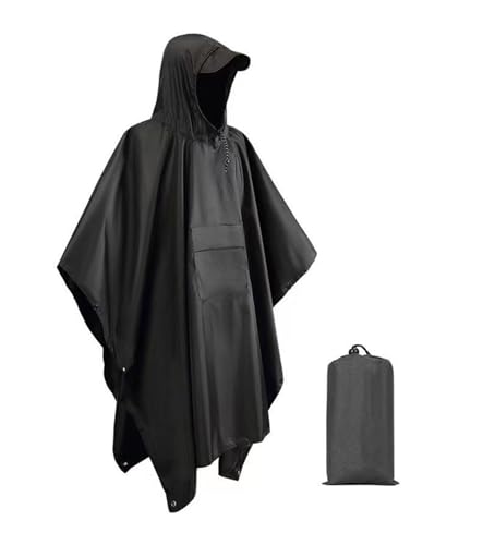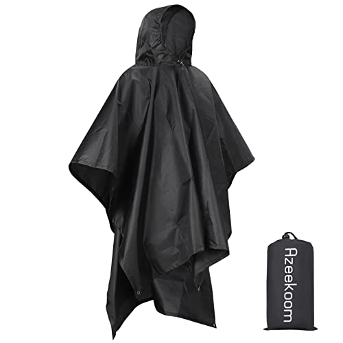 Azeekoom Regnjacka, regnponcho, regnrock, vattentät, unisex, campingtält, campingfilt, 3-i-1, multifunktionell regncape för picknick utomhus, vandring, camping, fiske, jakt, utflykt (svart)