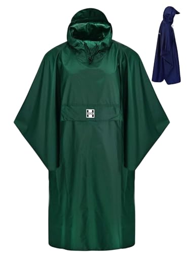 Azeekoom Regnjacka, regnponcho, regnrock, vattentät, unisex, campingtält, campingfilt, 3-i-1, multifunktionell regncape för picknick utomhus, vandring, camping, fiske, jakt, utflykt (grön)