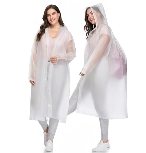 Gerhannery 2 Stycken Regnponcho med Huva, Vattentät Regncape för Vuxna, Regnjacka Återanvändbar Bärbar Regnrock, Regnkläder för Kvinnor Män - Vit