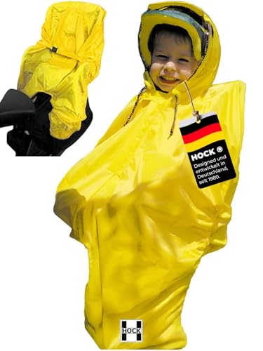 HOCK® 2-i-1 regnskydd, cykelstol, barn – innovativ 2-vägsfunktion, skyddar barn och cykelbarnstol från fukt – cykel, regncape för småbarn med huva och reflektorremsor, gul
