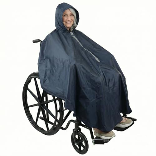 KMINA - Regncape rullstol vuxna, rullstolsfilt vattentät med dragkedja, regnponcho, cape för rullstol, filt för rullstolsanvändare med huva, rullstolsponcho varm