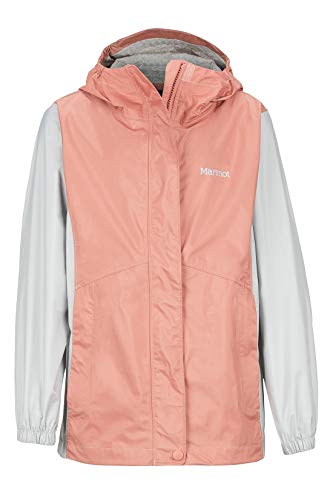 Marmot Girl's Precip Eco hårt skal regnjacka regnrock vindtät vattentät andas Coral Pink/Bright Steel XS