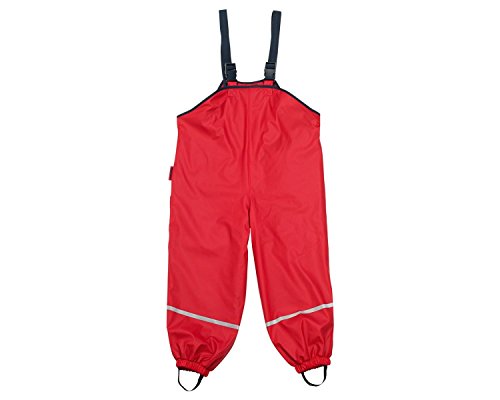 Playshoes unisex barn lerbyxor, regnhängselbyxor, fleecefoder vind och vattentäta byxor regnkläder, Röd, 140