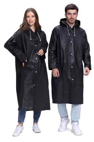 Kcmell Regnponcho för vuxna, 2-pack svarta bärbara vattentäta regnponchos för kvinnor och män, återanvändbar EVA-regnrock nödsituationer regnkläder med huva för vandring, resor, utomhusaktiviteter