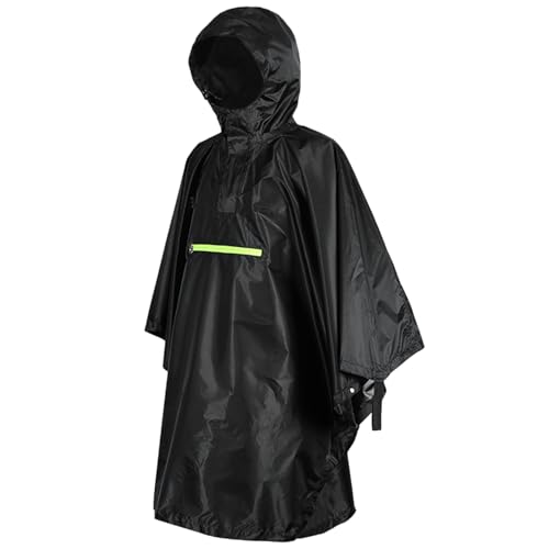 Regnkläder Poncho med Reflekterande Remsa, Lätt Huva Regnrock för Män Kvinnor, Regntät Regnjacka med Fickan för Camping Vandring Bergsklättring (Svart)